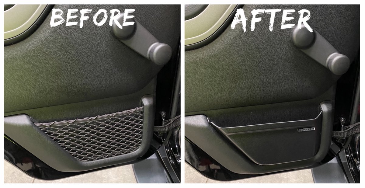 I’m getting ready to install my set of JK Pockets from Slickrock Gear. They are very durable. They have tons of different color options, I went with black and the color matches perfectly with my black interior. They are made in America which is the best part.